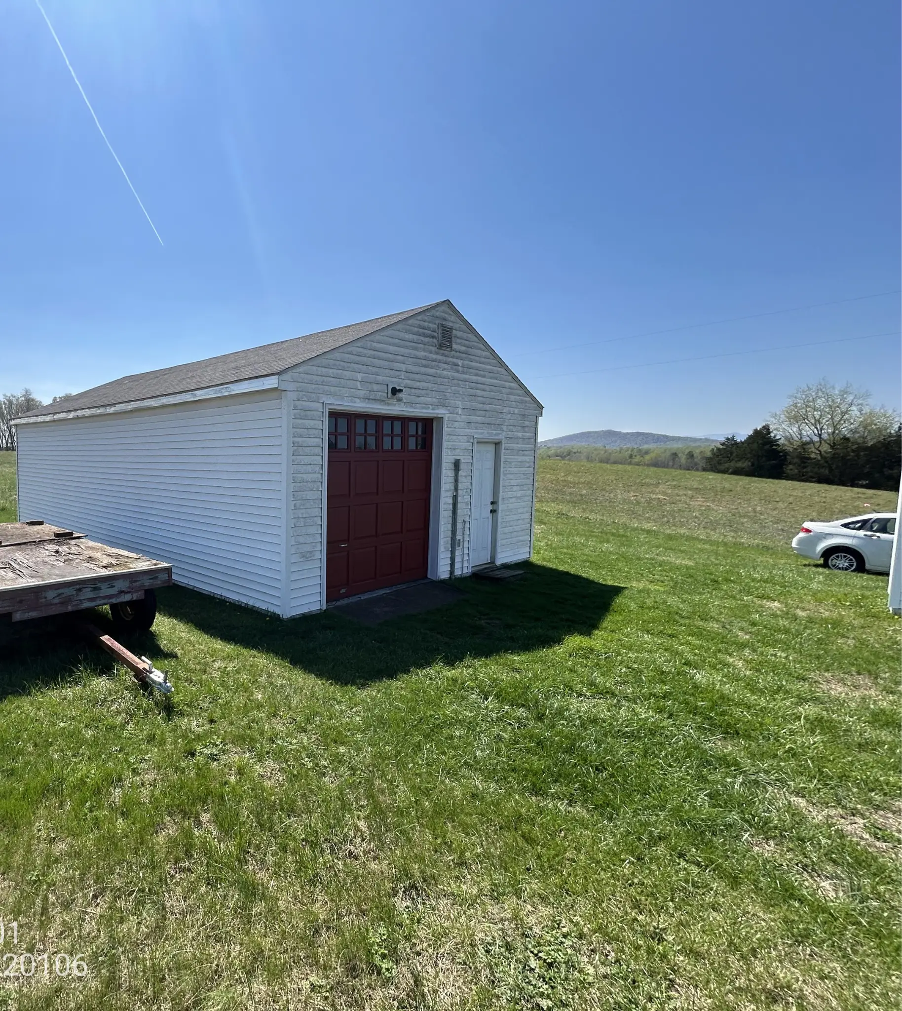 Most of our case studies are about the house. This one's about the outbuildings — three detached structures at the back-left of James Settle's property on Docs Road in Viewtown. The main house wasn't on the work order. James had been paying attention to what was happening on the outbuildings and made the call to deal with them before the shingles failed in a way that damaged whatever was stored inside.