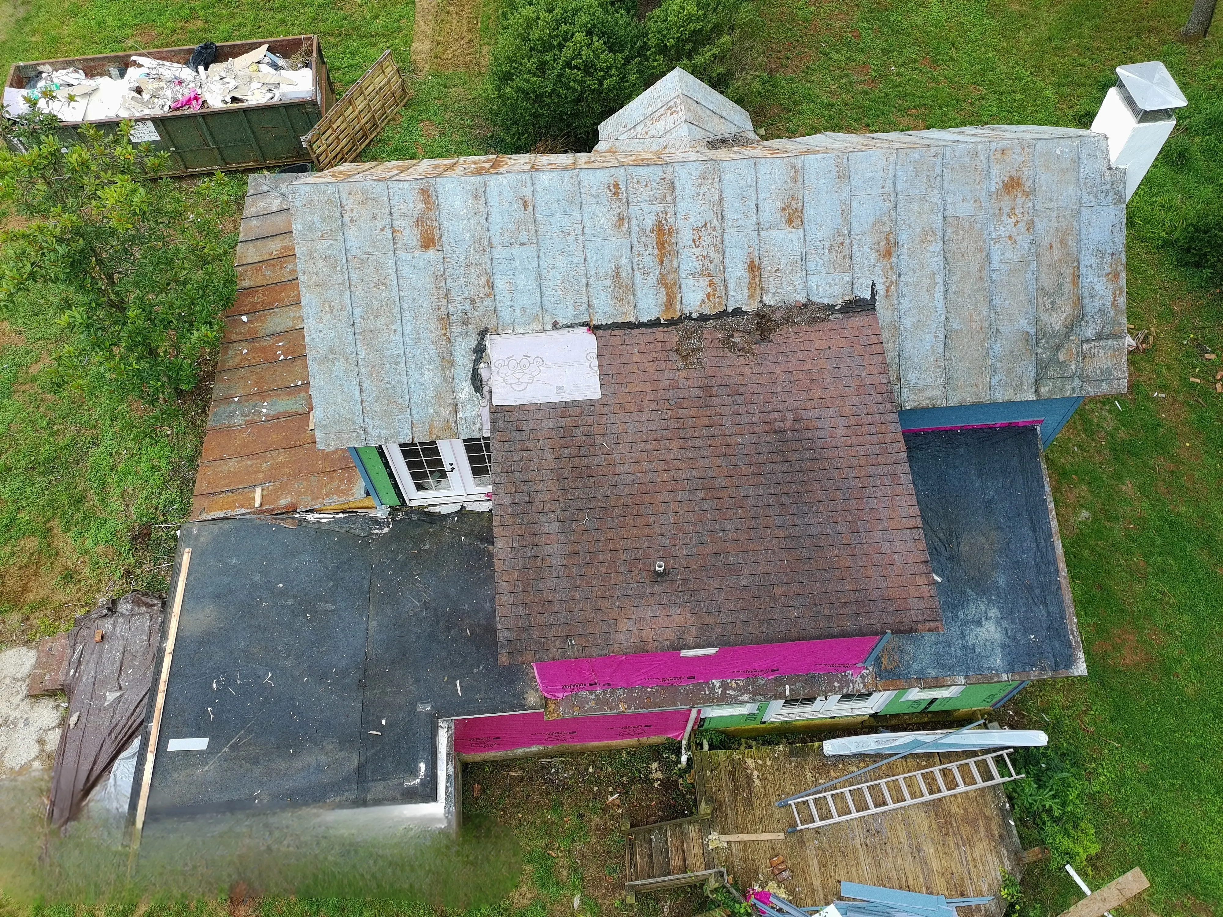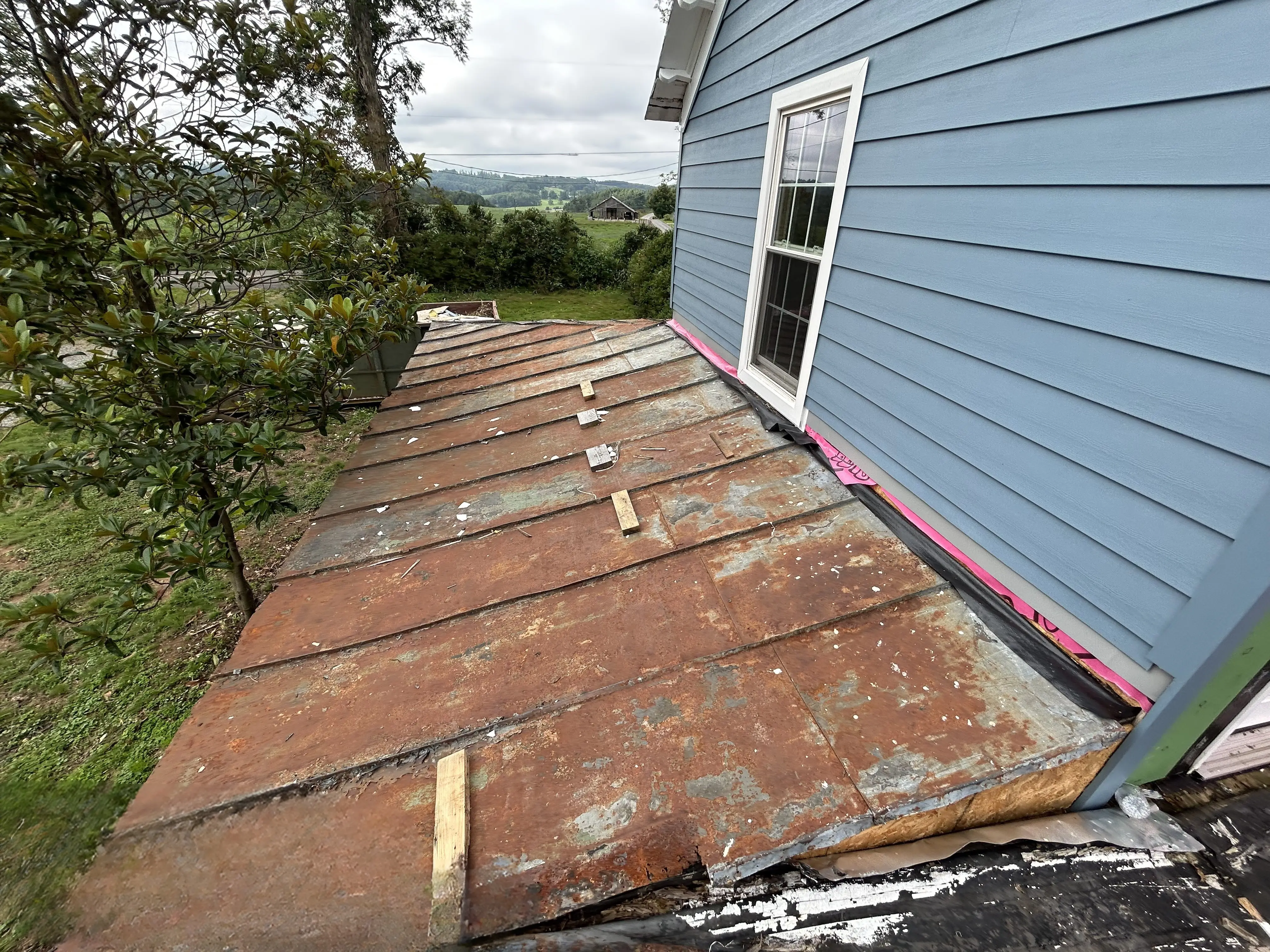 Our Wytheville roofing team recently inspected a home in Galax, Virginia, where the homeowner reached out for help with ongoing leaks in their existing shingle roof. The property, inherited by the family, had several areas of water intrusion and visible deterioration along the flat section of the roof.